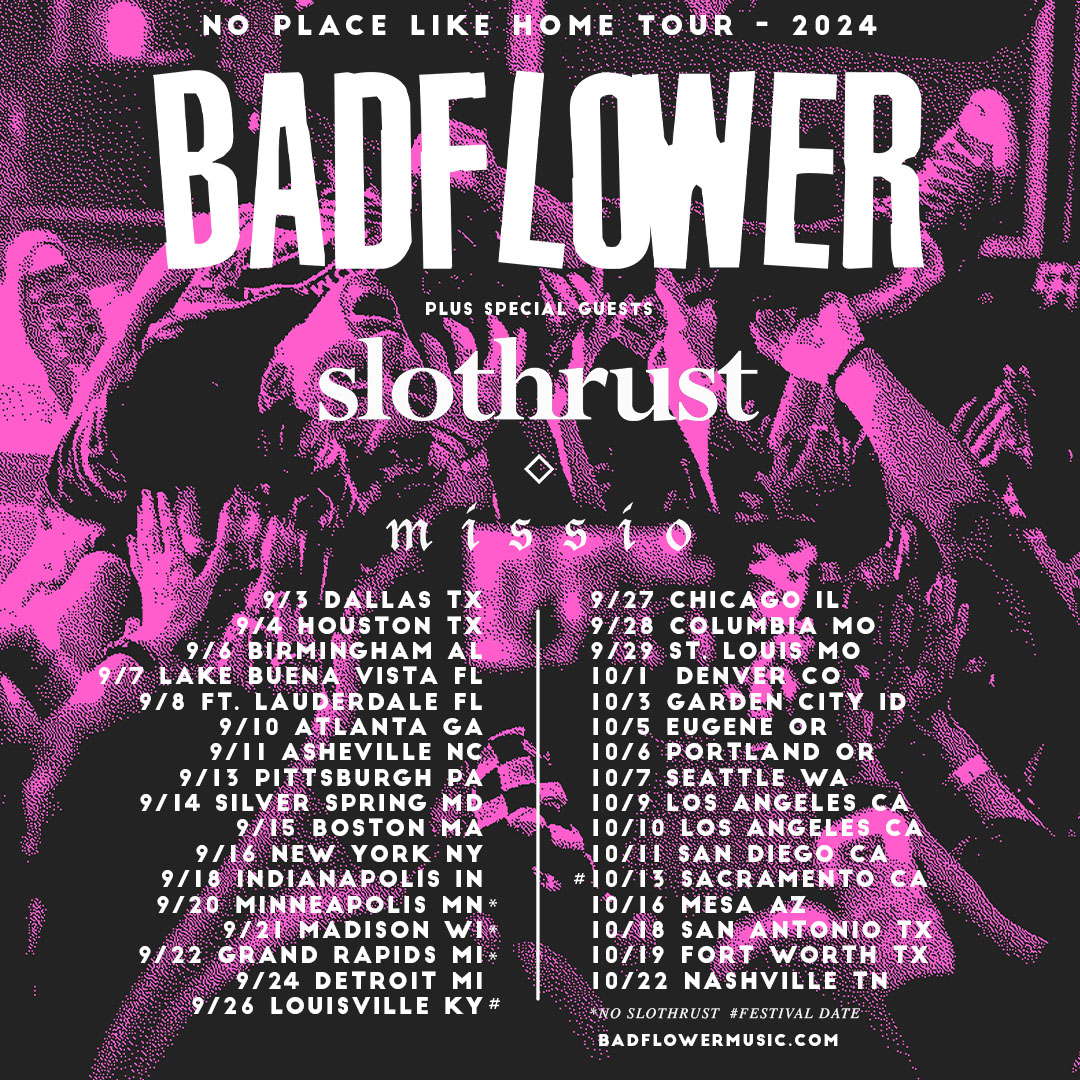 Badflower will be heading out on their headlining ‘No Place Like Home Tour’ throughout September and October, with support from Slothrust, Missio, and Divide The Fall.